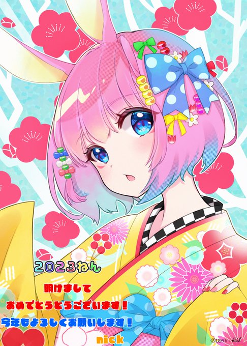 今年はうさぎ年〜!! あけましておめでとうございます🐰 今年もかわいいが溢れるたのし〜年にしていきたい! みんなの幸せも祈ってます🙏良い一年になりますように #2023年もよろしくお願いします #正月絵