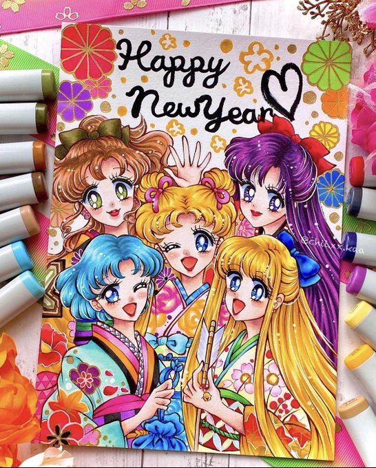 年賀状②セーラームーン🌙*。 原作絵を自分タッチにして描きました❤️ #セーラームーン #武内直子 先生 #月野うさぎ #水野亜美 #火野レイ #木野まこと #愛野美奈子 #コピック #sailormoon #naokotakeuchi #usagitsukino #amimizuno #reihino #makotokino #minakoaino #sailormoonfanart #copic