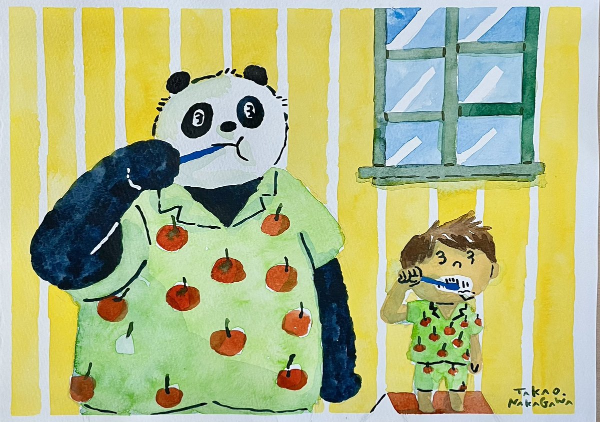 100日チャレンジ 57日目 #100日チャレンジ #今日は何の日 #歯ブラシの日 8月24日は「歯ブラシの日」ということで 「パンダとうさんと歯磨きするぼく」を描きました。 note.com/ekakinonakagaw…