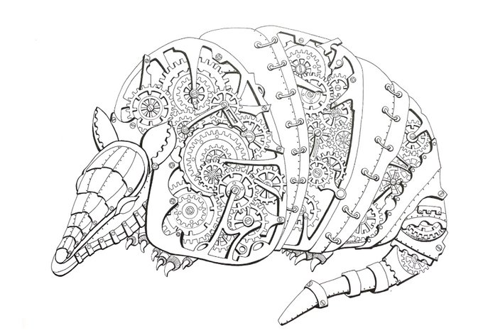 今日もお疲れ様でした✨✨ 台風が近づいてきてますT^T 皆様お気をつけてお越しください💦 ⚙アルマジロ原画⚙ #スチームパンクイラスト #歯車 #ペン画 #アルマジロ #絵柄が好みって人にフォローされたい