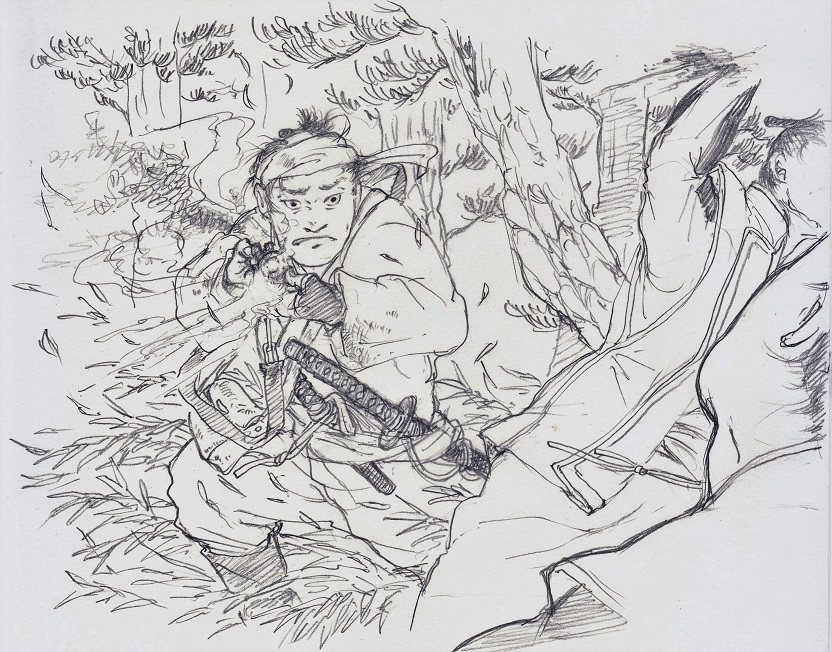 #歴創版日本史ワンドロワンライ 第195回お題「橋」 小田原藩の高橋藤太郎さんに伊庭八郎さんが斬られた際咄嗟に銃撃し伊庭さんを救った従者・荒井鎌吉さん(「戊辰国難記」では「坂田」)。「三枚橋の戦い」として橋上で伊庭さん本人が相手を斬り伏せた話で知られているがこの松林での銃撃の談もあり