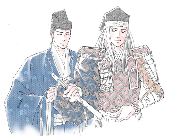 尊氏さんのご命日に寄せて… 【紐】 鎮撫のため出陣の士気を高めてゆく尊氏さんと、無事を祈りながら鎧の総角に紐を結んでゆく直義さんです☺️ どんなに側近が増えてもこれだけは足利兄弟だけの儀式という妄想です☺️ 紐を結ぶ行為にはどこか神秘的なものを感じます✨ #歴創版日本史ワンドロワンライ