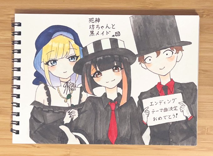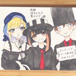 #死神坊ちゃんと黒メイド #art #アニメ好きと繋がりたい #イラスト #絵描きフォロバ100 #アニメ #絵描きさんと繋がたい #フォロバ #illustration ヴィオラ(声優 水瀬いのり)ウォルター(内田雄馬)ロブ(大塚芳忠)肉のマカロンのポーズの絵 えげつなかわいいダイエットエピソードで久々登場で大満足!