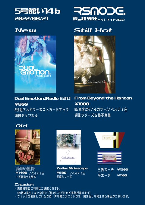 お品書き3/3 (※写納) 既刊の写納本(小説、写真集) 一部年齢制限あり、ご購入の際は年齢確認ができるものをご提示下さい。 当日はくけさん(@ck_417)隣接、ユイナさん(@yuina5839)に売り子さんをお願いしております🙌ご参加される皆様よろしくお願いします〜! #残狂ハルシネイト #残狂ハルシネイト10