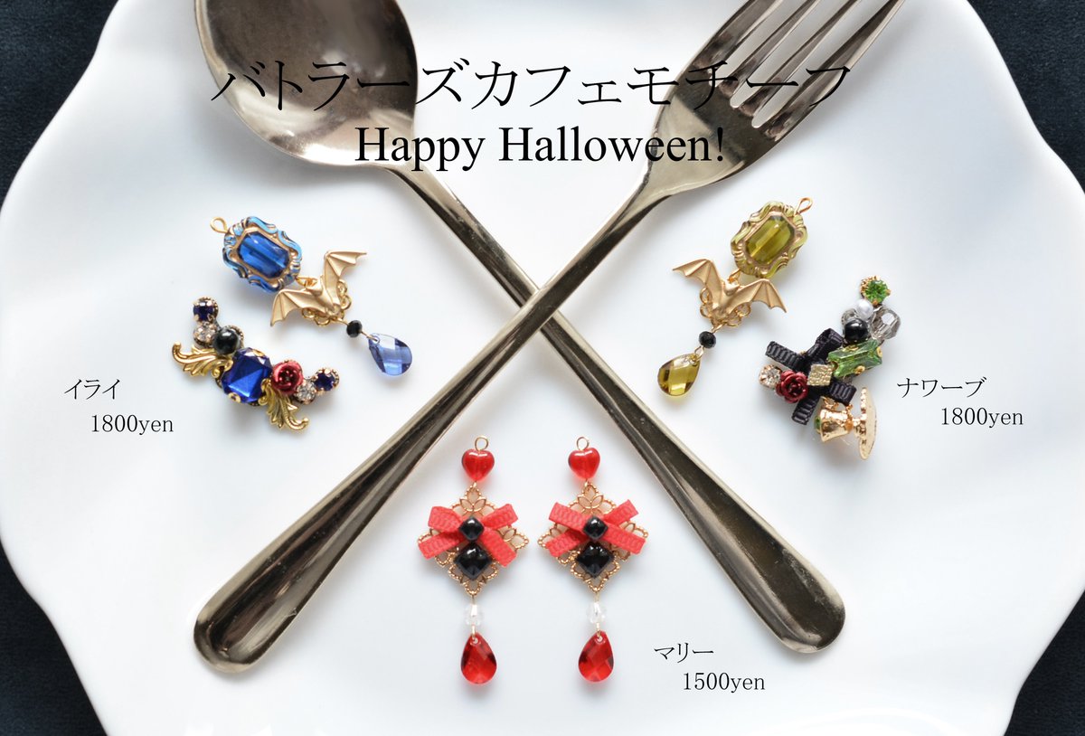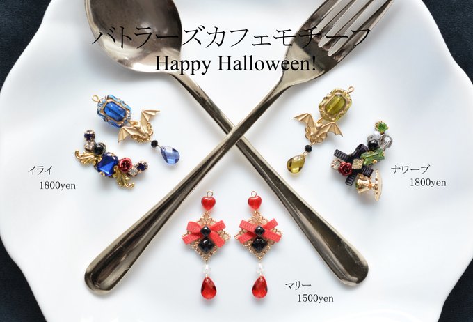 お品書き② モチーフアクセ、今回はこの辺りを持参予定です。ハロウィンなのでバトラーズ少し復活させました🎃 当日は売り子してくれるユイナさんと夏の風物詩な📷⚰️コスでお待ちしています❤ #残狂ハルシネイト #残狂ハルシネイト14