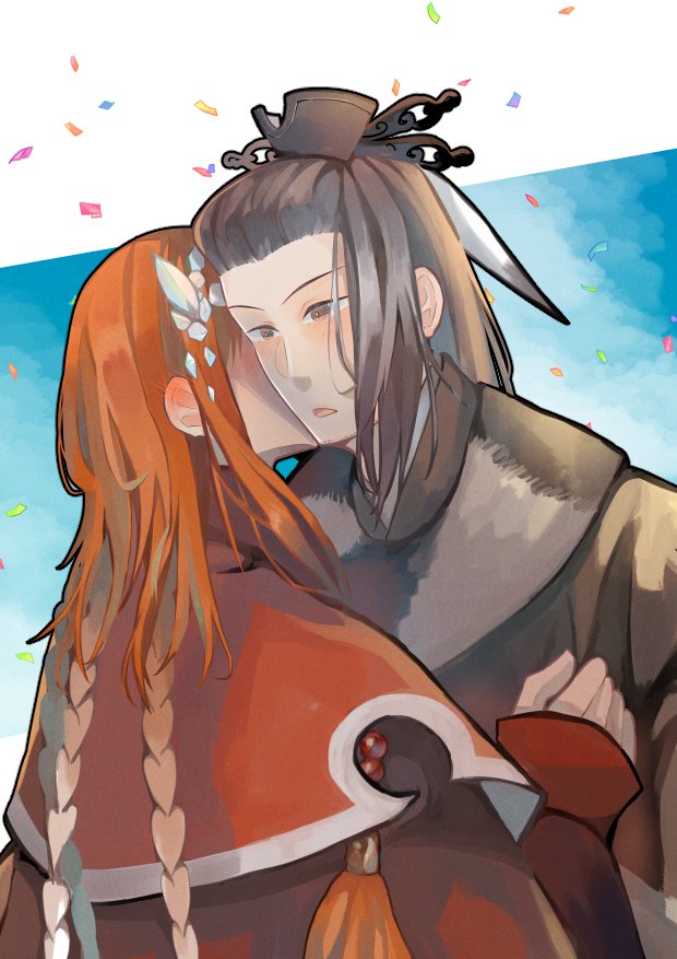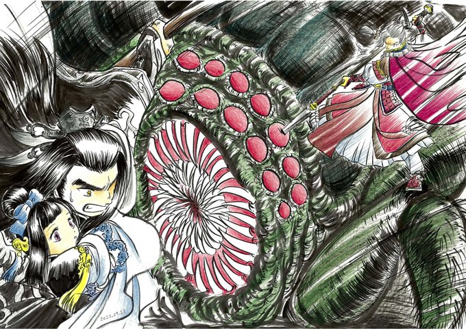 殤殿、生日快樂!でも生日と全然関係無い絵😅 胸踊る冒険の妄想…軍破殿と二人旅の途中、怪物に苦しめられている村に行き当たり、怪物の生け贄にされそうになった少女・天命ちゃんを危機一髪で助ける。なんてどうでしょう? #サンファンアート #殤不患生日快樂2022 #殤不患生誕祭2022 #サンファン