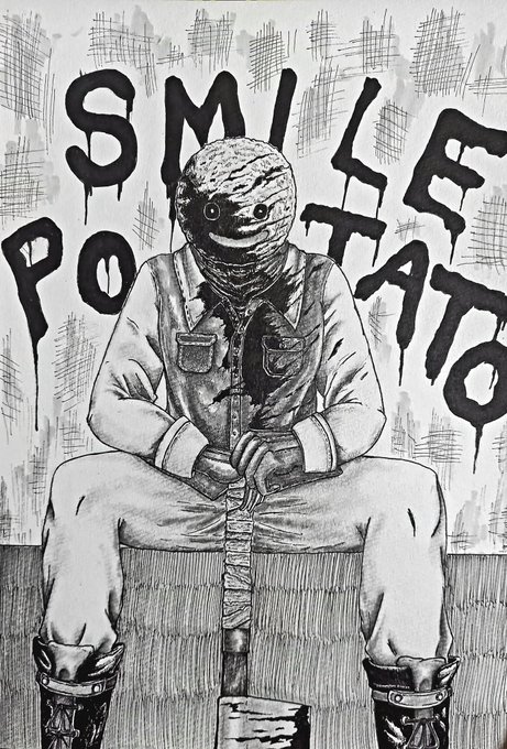 完成しました! 事後のソレなスマイルポテト 2枚目は元になったやつです #スマイルポテト #殺人鬼 #オリジナルキャラクター #アナログイラスト #絵師さんと繋がりたい #イラスト #ケチャップ