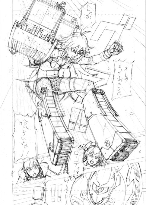いかにも前後がありそうな俺タワー1P漫画。ローディ(ローディングショベル)が必殺技で高所から自由落下任せの踏んづけ攻撃とかしたら超強そうって思って描いた。なお彼女の細部に一部アレンジを加えてます。清書はまた別の日に。 #俺タワーイラスト #俺タワー #毎日こつこつ俺タワー