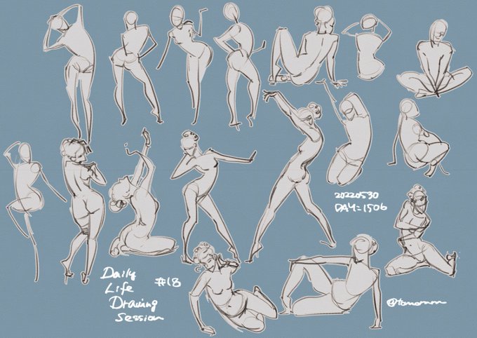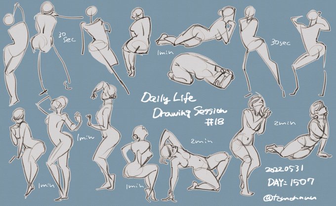 今日の。 クロッキー初めて3年、ずっとアタリ線を描かないと描けなかったんですけど、ここのところ描かないでも描けるようになってきました(๑•̀ㅂ•́)و✧ #22時のクロッキー #毎日クロッキー #gesturedrawing #ジェスチャードローイング #ジェスドロ