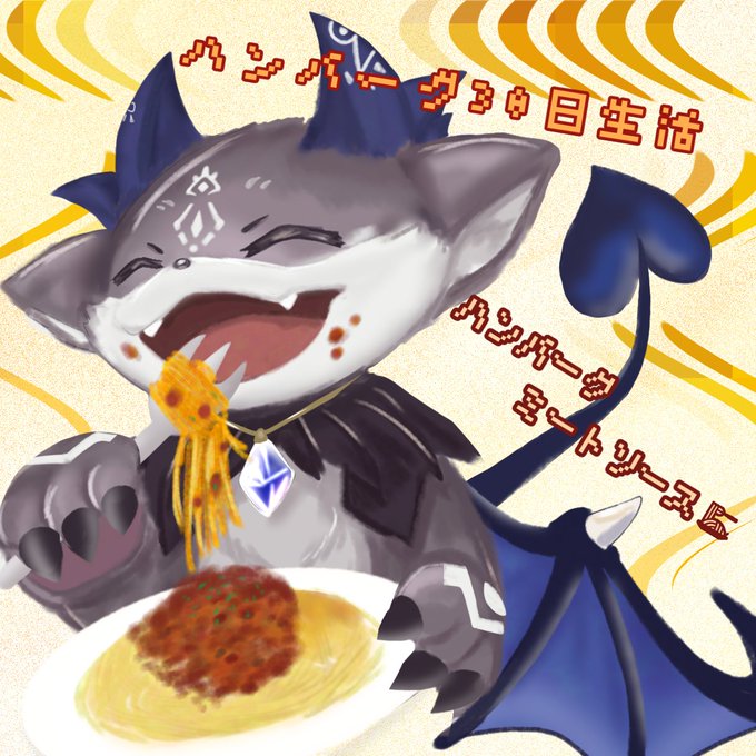 ハンバーグの肉が左側の歯に挟まって何とか舌で取ろうとしてるでび様 (ご本人に見られたら叱られそう) #でびるさまにささげるえ #毎日ハンバーグ30日 #にじさんじ好きに見てほしいものを載せる