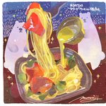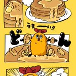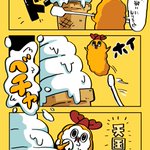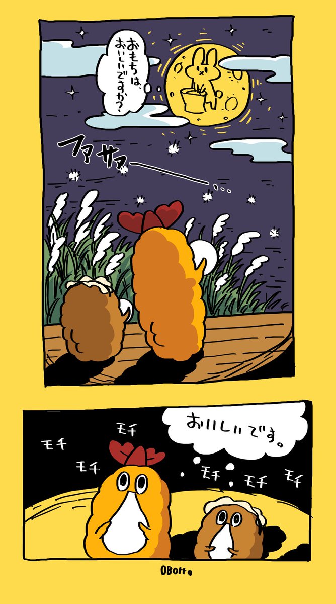 【#エビフライくんを満腹に】 今日は #十五夜 なのでお餅をあたえました₍₍ (ง ˘ω˘ )ว ⁾⁾ #漫画が読めるハッシュタグ #イラスト #毎日更新 (※コメントで食べ物を与えれます)
