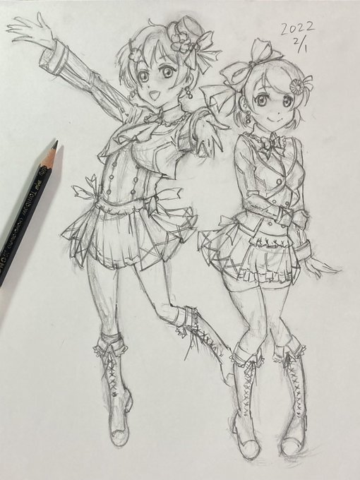 #毎日積み上げ (2022/2/1/19:09) 251日目. 夕食前のラクガキ. サウジ戦に間に合った. #ラクガキ #ラブライブ #それは僕たちの奇跡 #星空凛 #小泉花陽 #イラスト練習中 #絵描きさんと繋がりたい #イラスト好きさんと繋がりたい