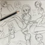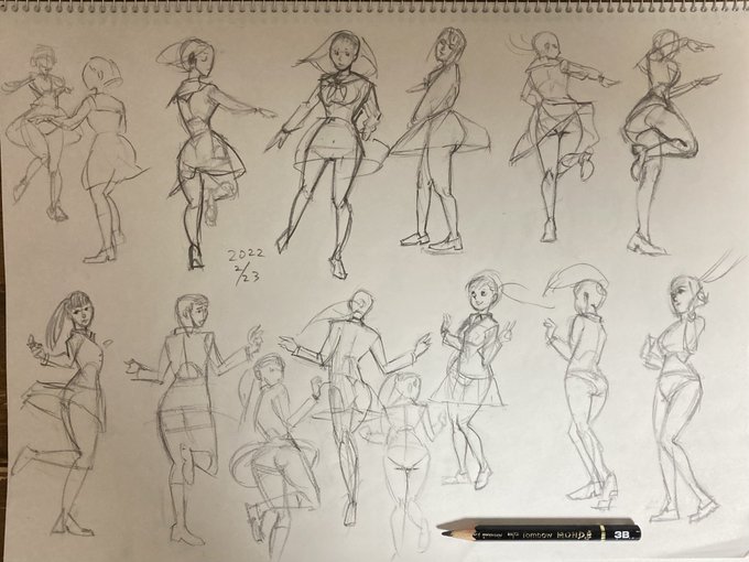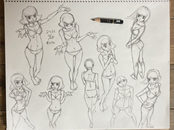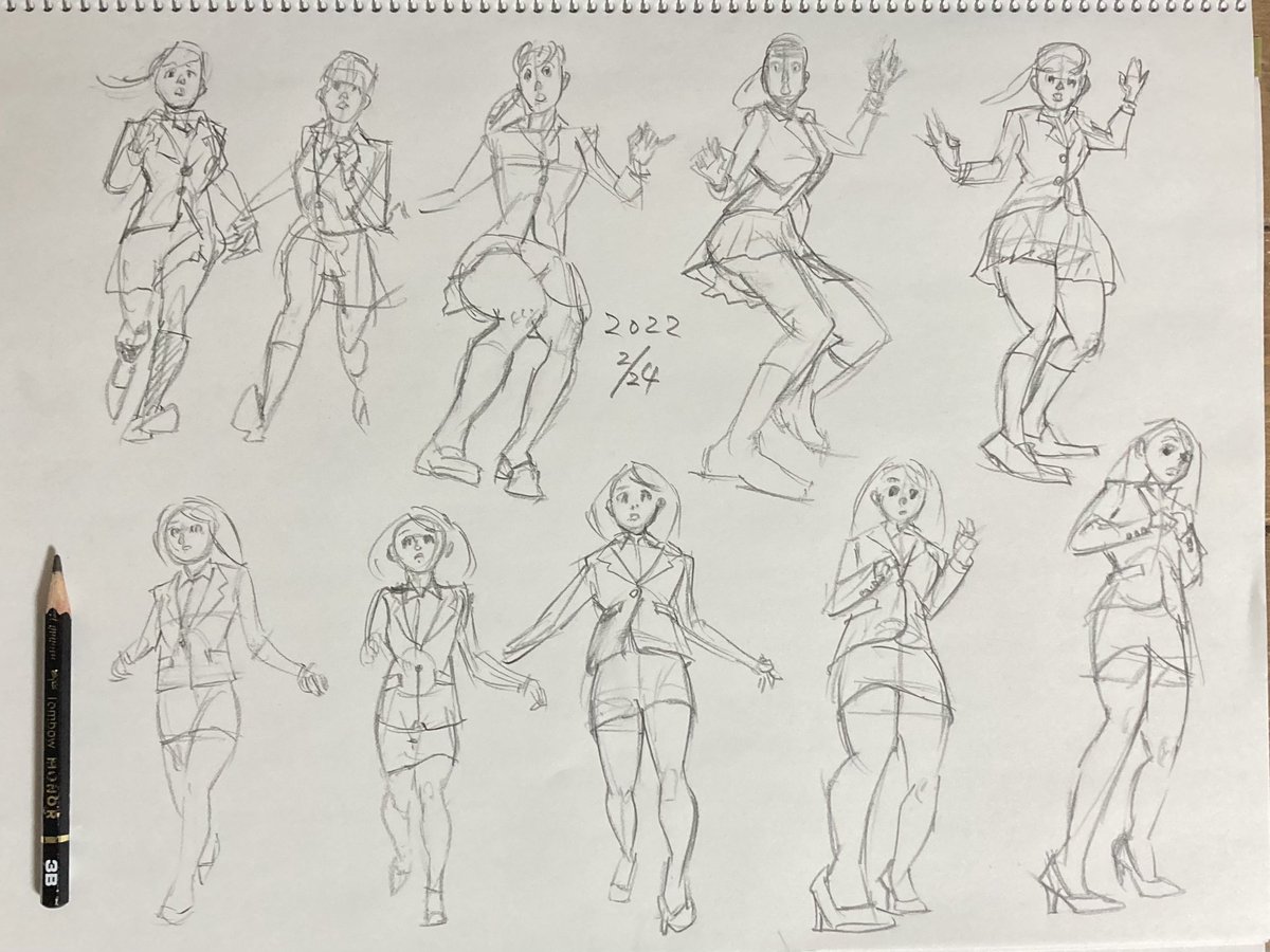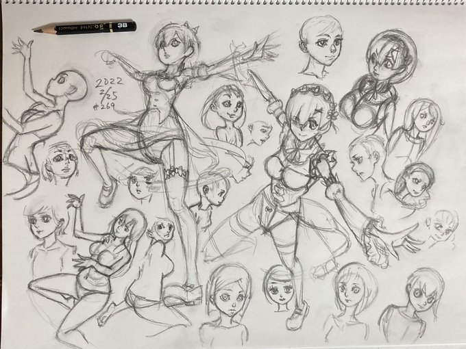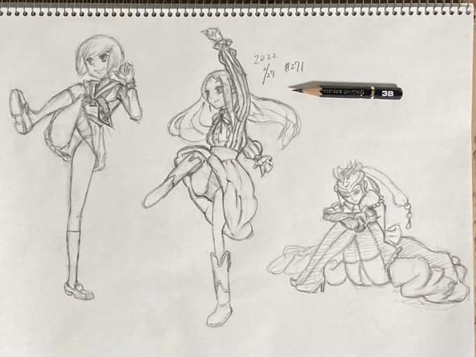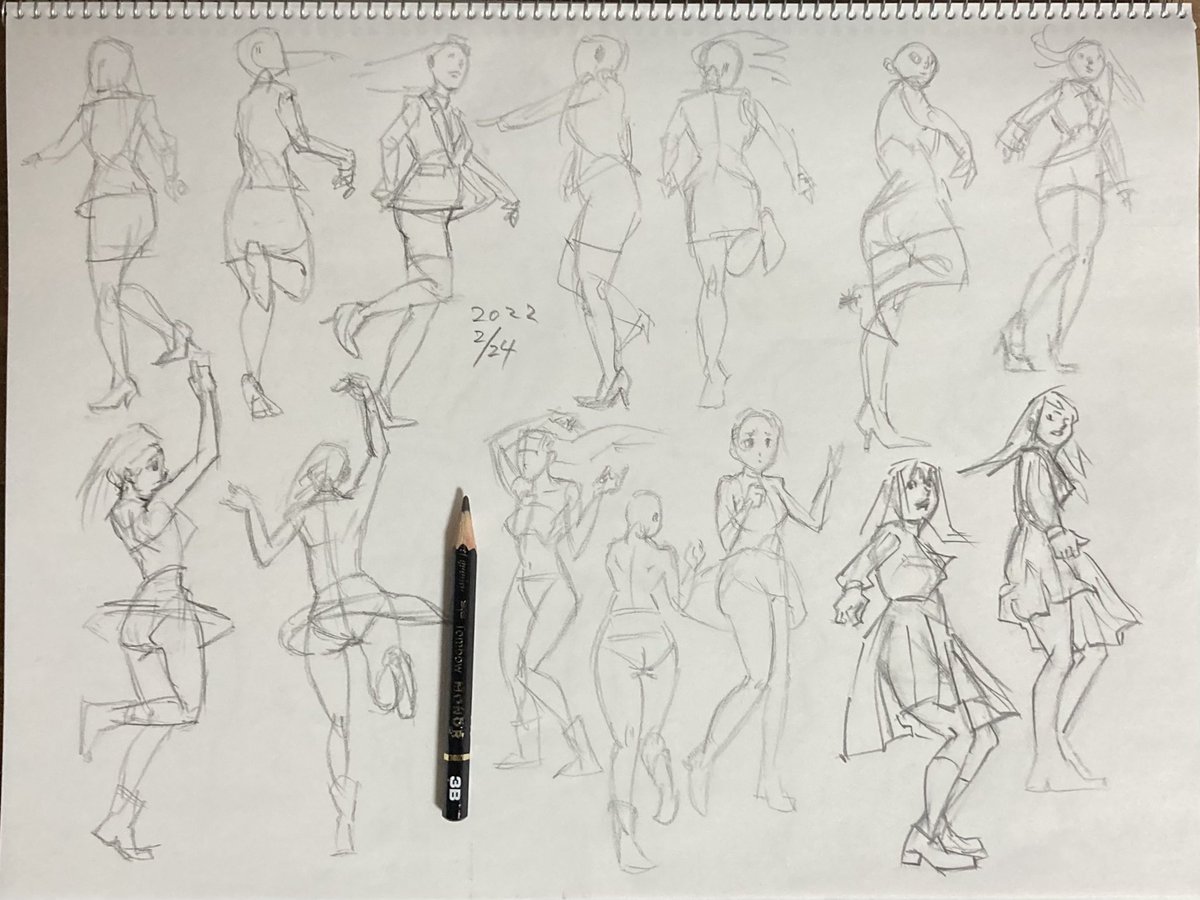 #毎日積み上げ (2022/2/24/21:01) 267日目と268日目. 夕食後のラクガキ. 昨晩の練習をアップし忘れてしまったのでまとめて. ローアングル女子. #スケッチ #イラスト練習中 #絵描きさんと繋がりたい #イラスト好きさんと繋がりたい