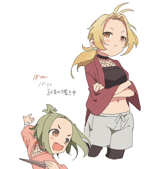 @peacefullforone #毎日30分でちょっとずつ一枚絵を描く 題材『くノ一ツバキの胸の内』、47日目です。 昨日に引き続き、タチアオイさんの喧嘩仲裁の絵。 やっぱり、カラーだとぐっと絵が引き立つなぁ