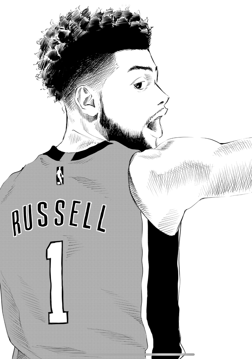 毎日NBAの選手のイラストを公開中!🌟 313日目はレイカーズ@Lakers 時代のディアンジェロ・ラッセル選手です。🏀⛹️♂️ #NBA75 #毎日NBA @Dloading #滝幸喜 @kohki19920219 #漫画家さんと繋がりたい #絵描きさんと繋がりたい