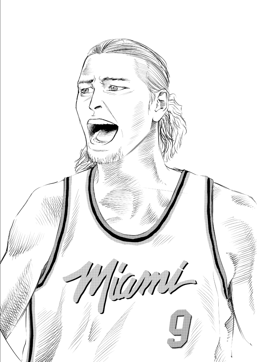 毎日NBAの選手のイラストを公開中!🌟 316日目は@MiamiHEAT 時代のケリー・オリニク選手です。🏀⛹️♂️ #NBA75 #毎日NBA @KellyOlynyk @kohki19920219 #滝幸喜 #漫画家さんと繋がりたい #絵描きさんと繋がりたい