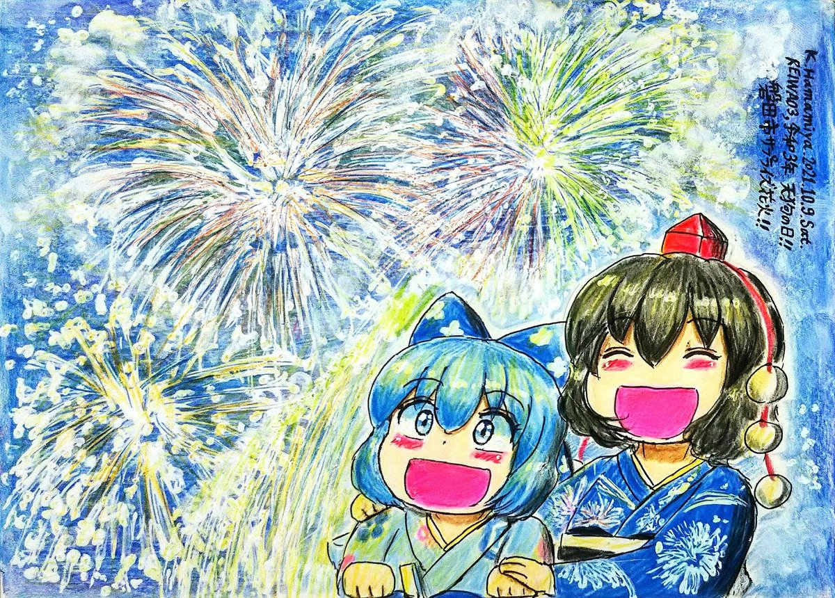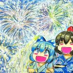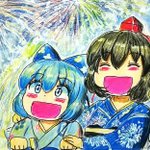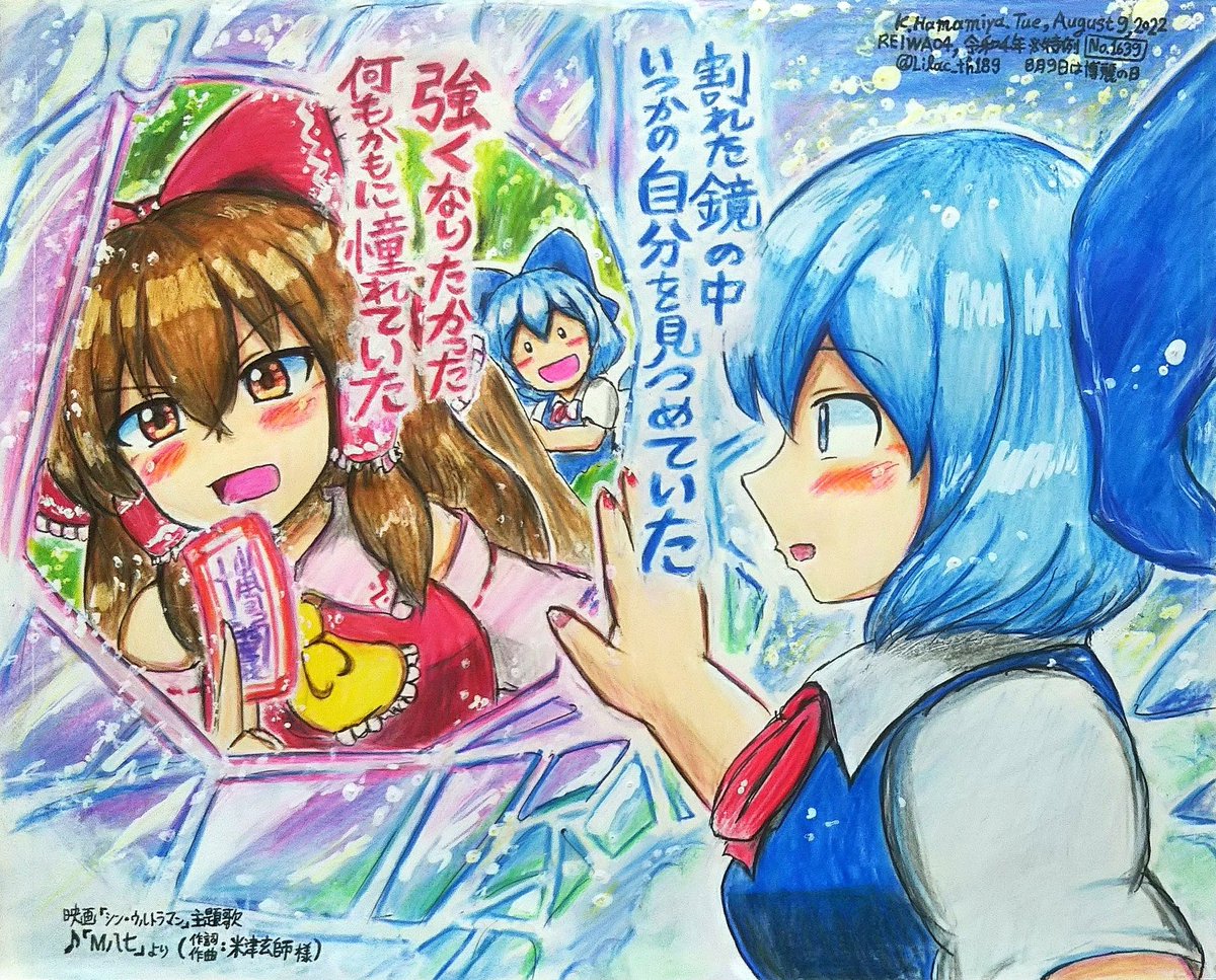 遥か空の星が ひどく輝いて見えたから 僕は震えながら その光を追い掛けた (♪シン・ウルトラマン主題歌「M八七」より) +40分 (1時間40分) #チルノ #博麗霊夢 #深夜の真剣お絵描き60分一本勝負 (東方版・1639回目参加・お題フリー) #毎月九日はチルノの日 #毎月9日はチルノの日 #8月9日は博麗の日