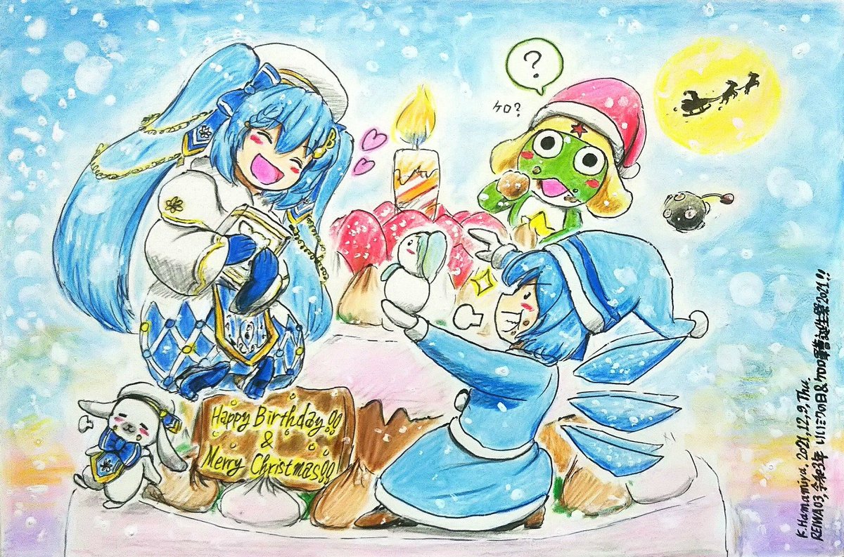 Happy Birthday !! 🎂🍓🐸 and Merry Christmas !! ☃️🎄✨ #毎月九日はチルノの日 #毎月9日はチルノの日 #初音ミク #雪ミク2021 #いいミクの日 #ケロロ軍曹 #ケロロ軍曹誕生祭2021