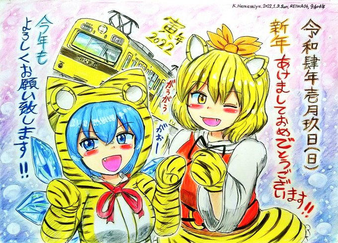 ちょっと出遅れましたがチルノちゃん&寅丸星ちゃん with 秩父鉄道1000系旧色であけおめ絵です❄️🐯🚋 今年もチルノちゃんいっぱい描いて行きますのでよろしくお願い致します🎍 #毎月九日はチルノの日 #毎月9日はチルノの日 #明けましておめでとうございます #寅年 #寅丸星 #秩父鉄道 #1000系 #101系