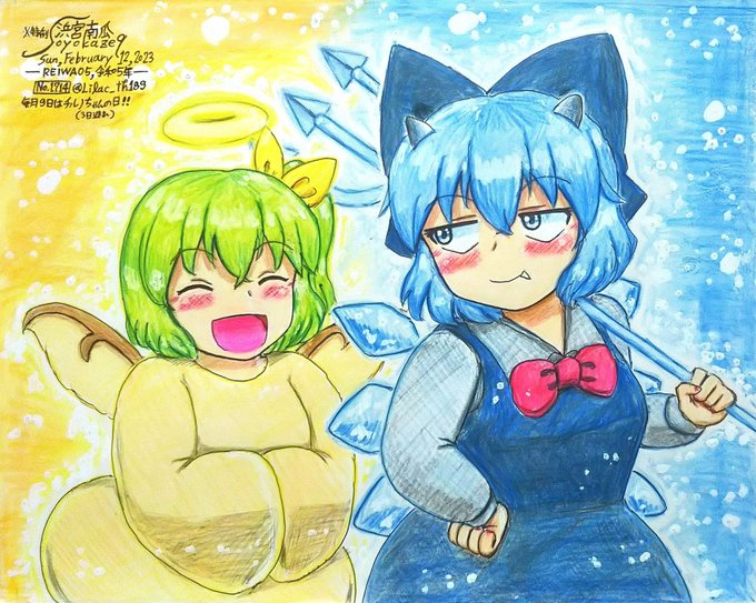 天使の大ちゃんと悪魔のチルノちゃん 立場は違えど大の仲良し👼😈 #チルノ #大妖精 #深夜の真剣お絵描き60分一本勝負 (東方版・1714回目参加) (※3月24日お題) #毎月九日はチルノの日(遅) #毎月9日はチルノの日(遅)