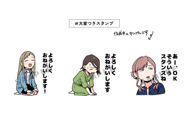 【#毎月庭つき大家つき LINEスタンプ】 前々からお伝えしてました、LINEスタンプを作成中です🏡🎨 こんなのが欲しい・このコマをスタンプにしてほしい等お聞かせください! このツリーへのリプもしくはハッシュタグ #大家つきスタンプ をご利用ください🖋️ ※ひとまず1巻分の内容でお願いします🙇