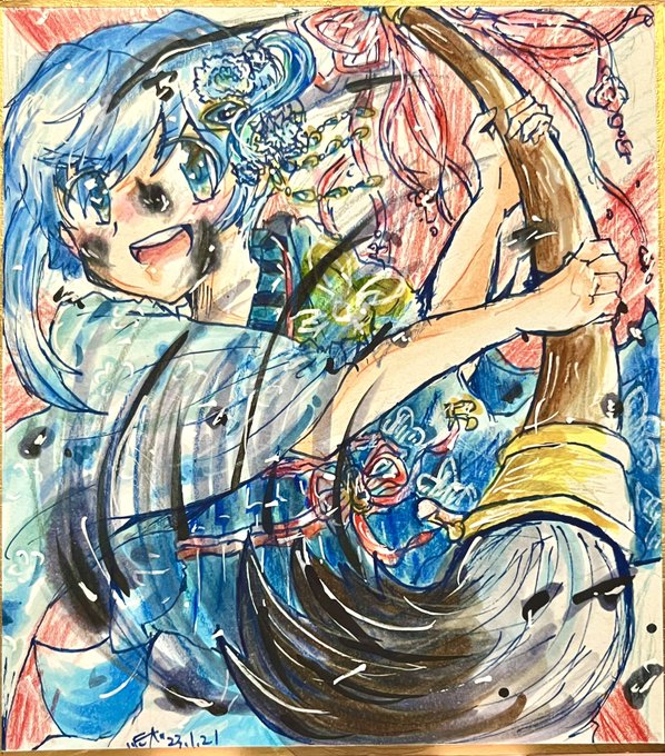 やっと完成させました……笑!! 色々とミスったんですけど何とか完成でけたああああああああぁぁぁ❀.(*´▽`*)❀. 今回はコピックと、少し色鉛筆を使って描いてみました〜!! 晴れ着さやかはもう本当に大好きです……!!o(>∀<*)o🎵💙🎶 #美樹さやか #まどマギ #毎月14日は色紙に絵を描く日