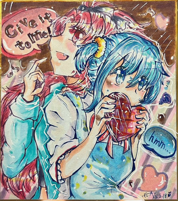 #毎月14日は色紙に絵を描く日 《バレンタイン》!! 結構大遅刻したけど!! 完成したどー!!((? 杏さや描くの楽しい(∩>ω<∩)💕 来月のホワイトデーは時間があったら、ちょっとしたマンガも描いてみたいな……(´▽`*)アハハ 色々ミスったけど可愛く描けてるといいです!! #杏さや #まどマギ