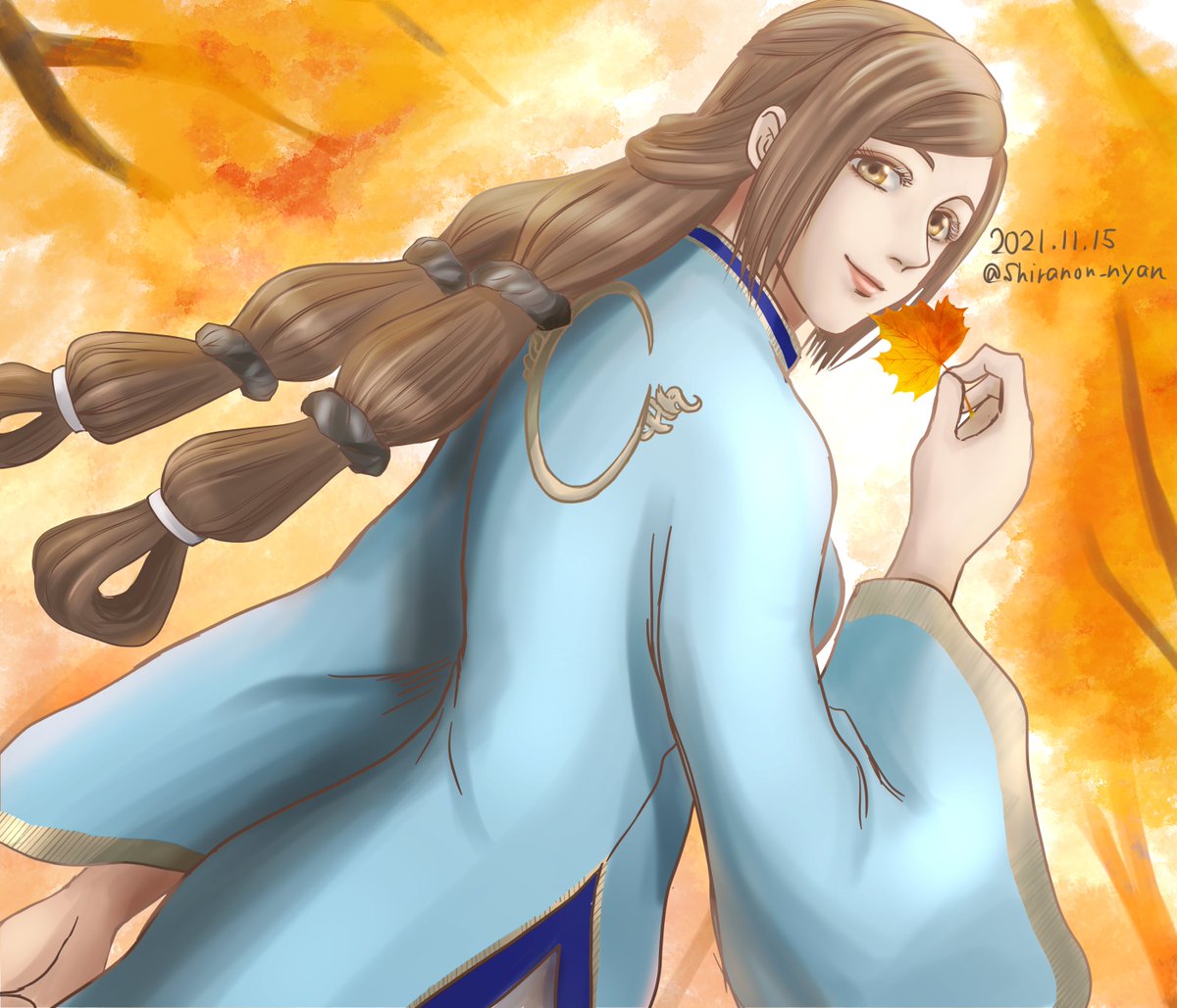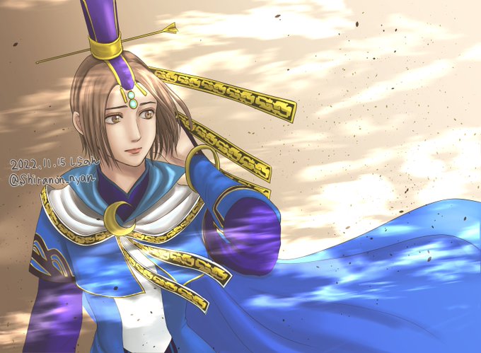 #毎月15日は蔡文姫の日 今月もよろしくお願いします! 描いてみたかったけど難しそうで躊躇していた、覚醒衣装に挑戦してみました。青い髪に青い瞳なのもキレイで…発光させるのもめちゃくちゃ楽しかったです☺✨