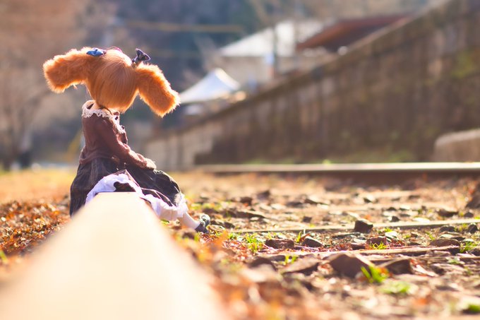 #今夜のドール撮影120分一本勝負 11/7のお題は【こしをおろす】過去 線路に腰を下ろし、もう来ない列車に思いを馳せる #うちのこかわいい #MDDはいいぞ #ドールオーナーさんと繋がりたい #ドール野外撮影 #MDDレナ #毎月7日はレナの日