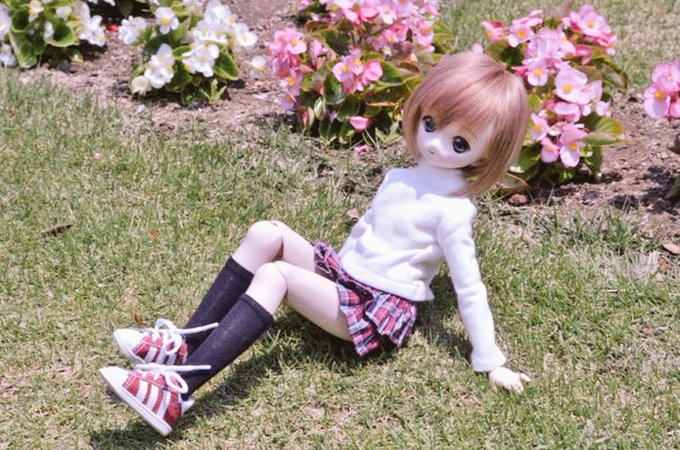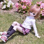 #今夜のドール撮影120分一本勝負 【こしをおろす】過去 芝生に腰を下ろす( ´ ▽ ` )ノ 花音「日差しが気持ちいい٩(๑❛ᴗ❛๑)۶」 #うちのこかわいい #MDDレナ #毎月7日はレナの日