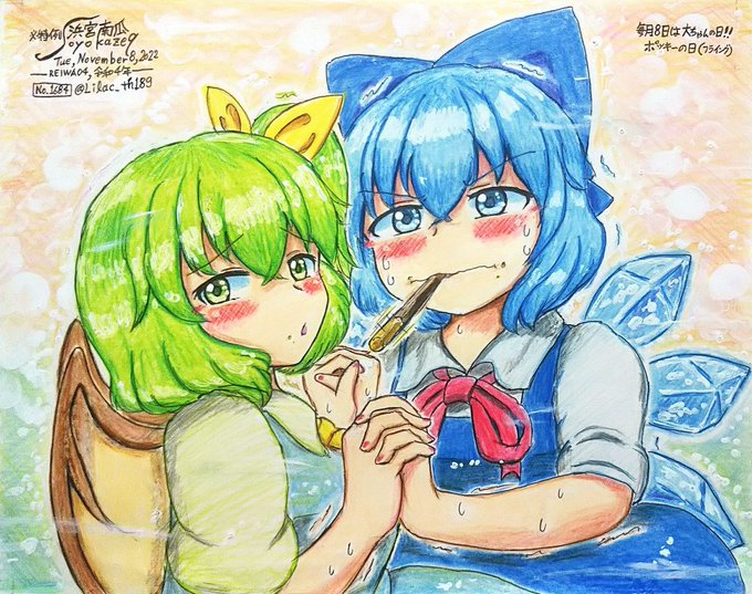 ❄️「・・・・・・///」 🎀「・・・・・・///」 +15分 (1時間15分) #チルノ #大妖精 #深夜の真剣お絵描き60分一本勝負 (東方版・1684回目参加・お題フリー) (※2月22日お題) #毎月八日は大妖精の日 #毎月8日は大妖精の日 #ポッキーの日 (フライング)