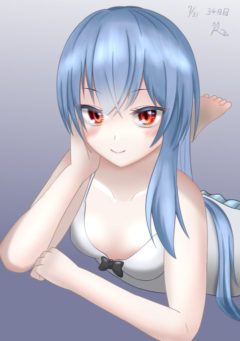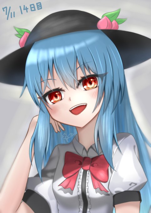 #TenshiHinanawi / #比那名居天子 from #東方Project / #Touhou Related to #やまなし桃の日 / Yamanashi Peach Day because there are peaches on her hat Ref. Her figurine from FuRyu #Illustration #Drawing #イラスト