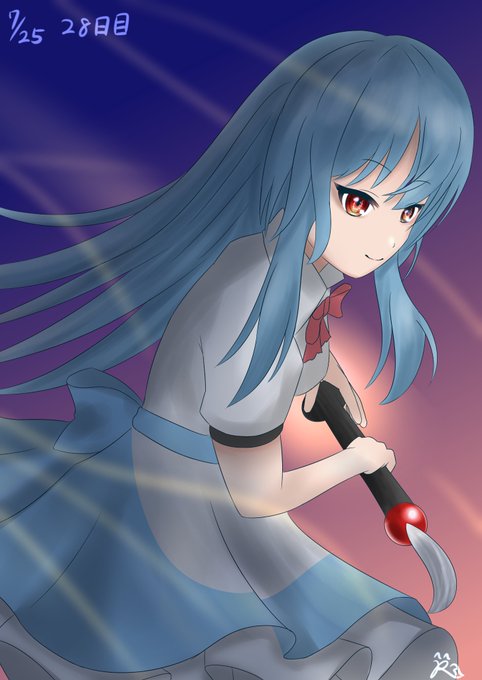 #東方Project #比那名居天子 水彩色鉛筆で天子ちゃんを描きました!背景はポップ調?の日没にしてみました!デザイン的にはいいのかな? #絵柄が好みっていう人にフォローされたい #夏の創作クラスタフォロー祭り