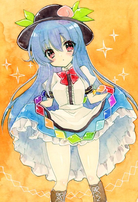 #東方Project #比那名居天子 今年はウサギ年なので、バニーコスの天子ちゃんを水彩色鉛筆で描きました!どうでしょうか! 胸は多少盛っています~! #絵柄が好みっていう人にフォローされたい #東方好きと繋がりたい