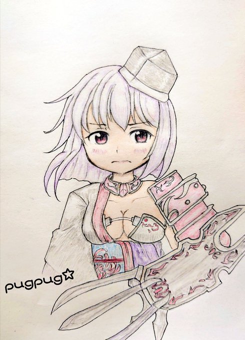 パグ風!戦国乙女「毛利モトナリちゃん✨」完成しました♪パグクオリティです🐶🐾 モトナリ「…そう…。じゃあ、一緒に昇天してみる?」 #イラスト #アナログ #イラスト好きな人と繋がりたい #戦国乙女 #毛利モトナリ #バス運転士パグの絵