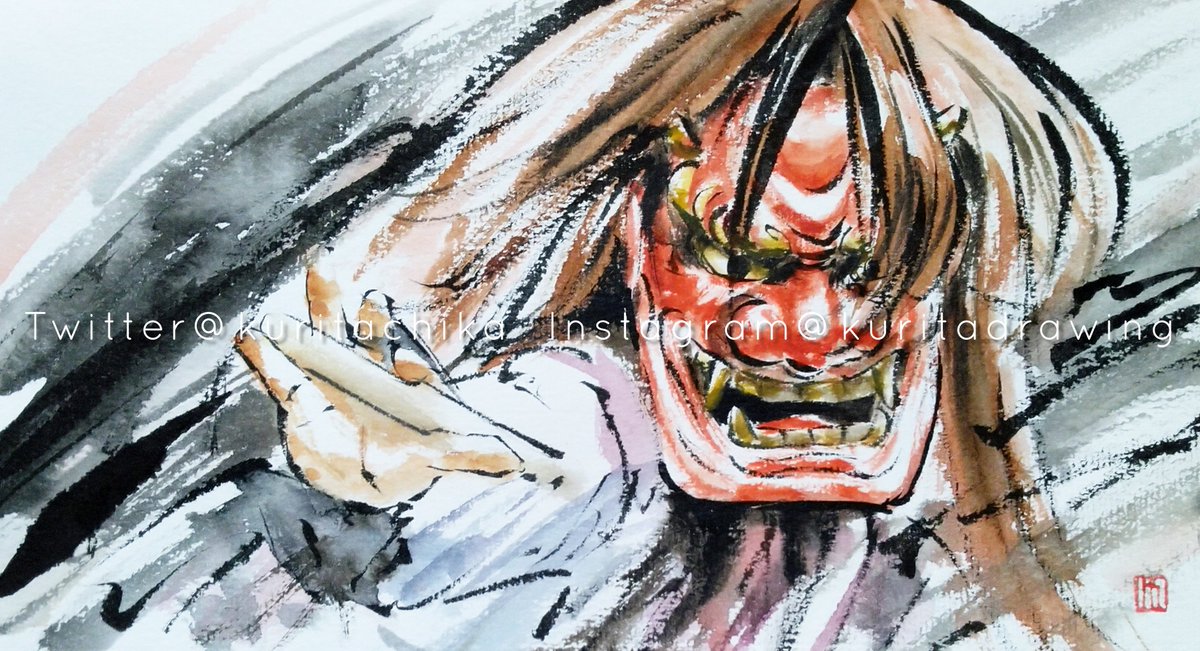 原画「佐渡の鬼太鼓」 くりのき画廊にて販売中でございます。 お部屋に民俗芸能を飾りませんか。 kuritachika.thebase.in #民俗芸能 #佐渡 #水彩画 #watercolor