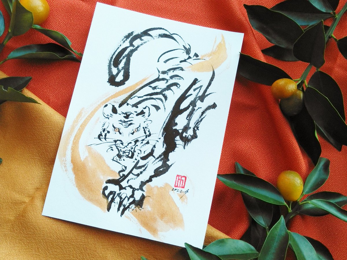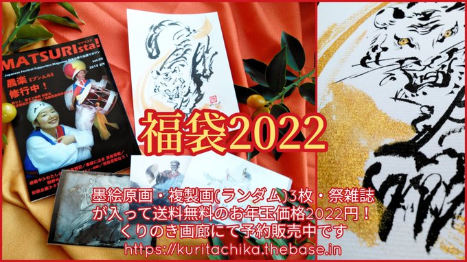 【くりのき画廊の福袋】 墨と金で描いたトラさんの原画と、祭や芸能を詰め込んだ送料無料の2022円! 通販くりのき画廊にて販売中です kuritachika.thebase.in #福袋 #虎 #墨絵 #民俗芸能 #あけましておめでとうございます