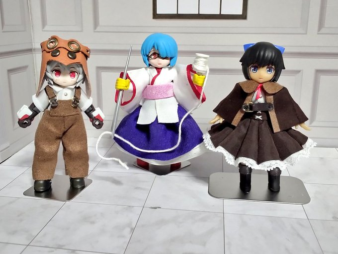 棚へのおまけと布工房すくなからのモデルデスクトップアーミー配置終わりましたのでおまけ企画始まりました。 オビツ11向けサイズの片手杖も一つだけですが追加しました。おまけ共々よろしくお願いします。 #気まぐれかふぇ・ばぁー #デスクトップアーミー #布工房すくな #オビツ11 #オビツろいど
