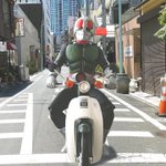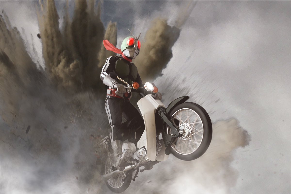 『サイクロン号は修理中』 S.H.フィギュアーツ(真骨彫製法) 仮面ライダー新1号(2017年発売/バンダイ) スカイネット 1/12スケール スーパーカブ(2019年発売/青島文化教材社) #フィギュア撮影友の会 #オモ写 #フィギュアーツ写真部 #気まぐれに手持ちのおもちゃを撮ってみる #仮面ライダー