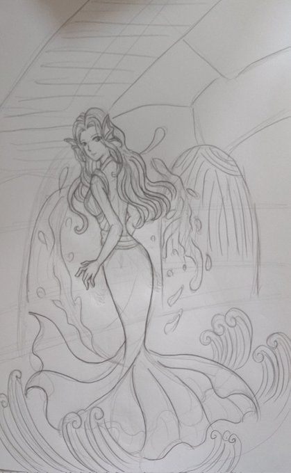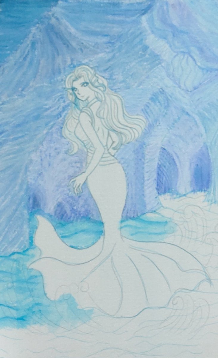 水の精霊・塗り2日目。 だいぶ涼しげになりました。 途中で集中力きれたので、今日はここまで。 #イラスト #イラスト好きさんとつながりたい #絵描きさんと繋がりたい #水の精霊 #illustration