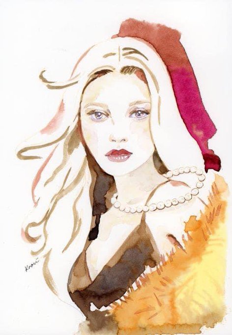 レースのカーテンから透けた陽の光。冬の気配が近づいてきましたね。皆様ご自愛下さい。 #中里かおり #ファッションイラスト #水彩イラストレーター #水彩イラスト #透明水彩 #水彩 #Tiffany #dress #makeup #art #girl #woman #illustrator #illustration #kaorinakazato #fashionillustration