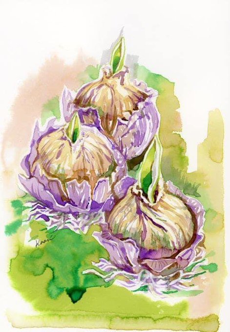 雨のいろ。庭の植物たちが濡れて色濃く、さらに彩り豊か。 #中里かおり #ファッションイラスト #水彩イラストレーター #水彩イラスト #透明水彩 #インク #球根 #art #artwork #bulb #illustrator #illustration #kaorinakazato #fashionillustration #watercolor