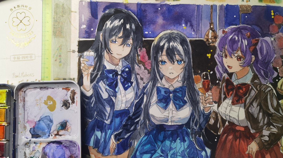 「梅雨」 毎月17日と18日はイナバの日ということで、うどんげとてゐを描いてみました。梅雨に二人で登校中という設定です。#毎月17日と18日はイナバの日 #東方Project #鈴仙・優曇華院・イナバ #因幡てゐ #透明水彩 #watercolor #水彩画 #水彩イラスト #アナログイラスト #ニーソ