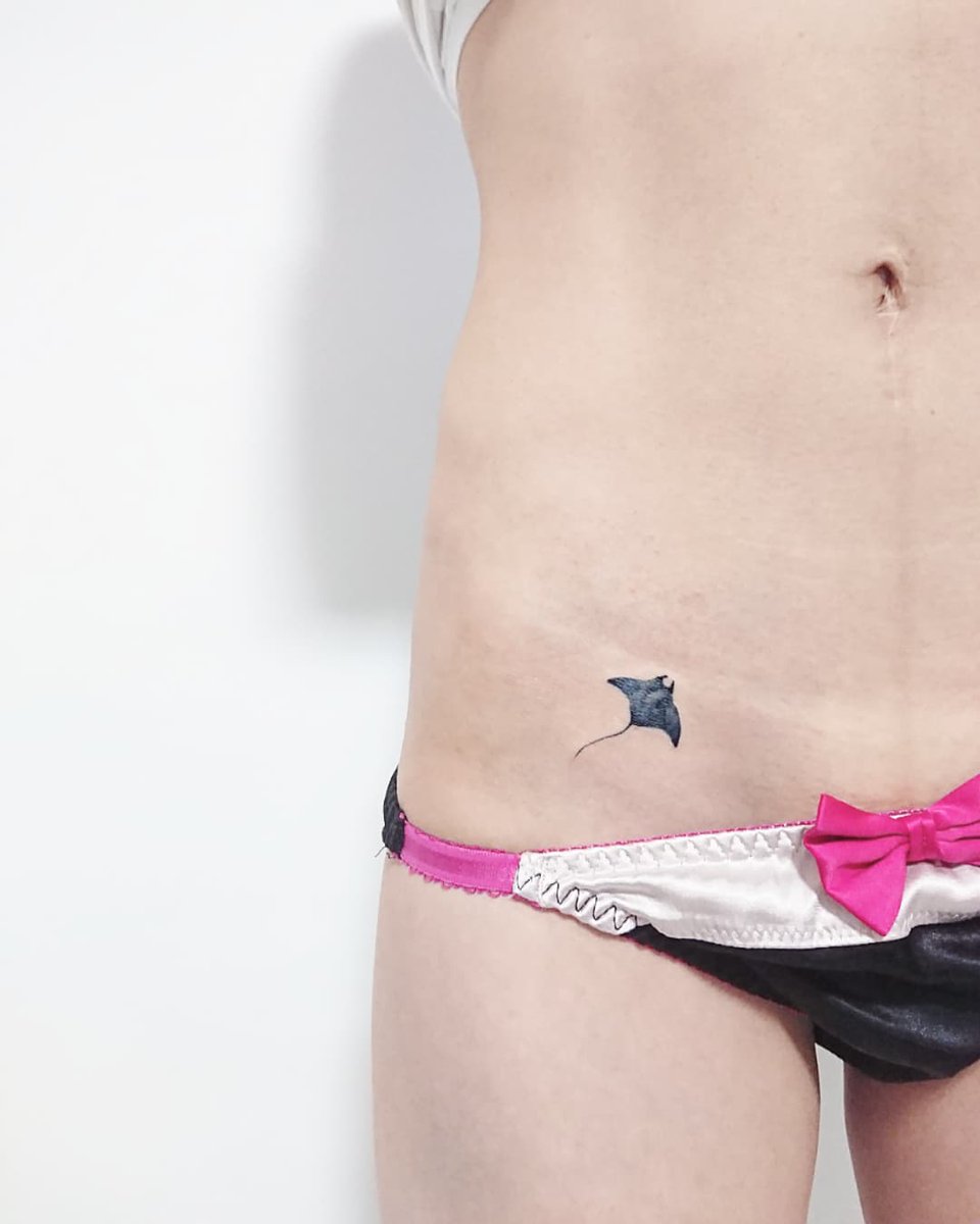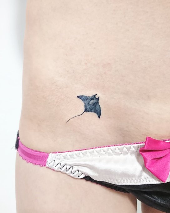 マンタ お客様の希望で藍色にしたので海感アップです 笑 スキューバやってみたいな #Watercolor #watercolortattoo #tattoo #smalltattoo #タトゥー #水彩 #水彩タトゥー #水墨タトゥー #タトゥー女子 #タトゥースタジオ