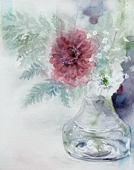 ◆平和への祈り展◆ウクライナの子供たち支援の為のチャリティー展示会。 ★ バーチャル展示会は24時間オープン artspaces.kunstmatrix.com/en/exhibition/… ★深緋〜ふかひ〜 - 藏内美樹 artisansjp.com/prayforpeace #水彩画 #透明水彩 #花 #ガーベラ #水彩画花 #静物画 #水彩静物画 #watercolor #watercolorpainting