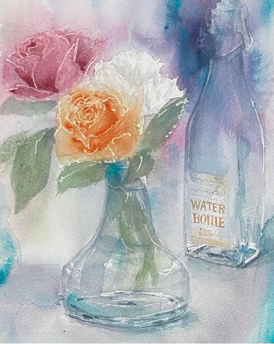 北鎌倉 秋の展示会2022』後期が始まりました。 artisansjp.com/autumn2022 鎌倉の秋と芸術を応援して下さいね💖 薔薇 - 藏内美樹 Roses - Watercolor by Miki Kurauchi #水彩画 #透明水彩画 #静物画 #水彩静物画 #水彩画花 #薔薇 #ばら #花 #watercolor #Watercolorpainting #flower #Watercolor