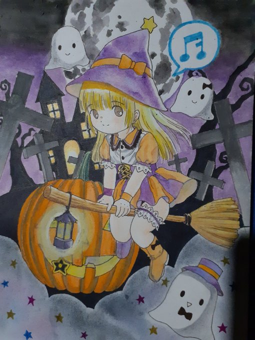ハロウィンイラスト完成しました😅笑 ハロウィン当日にしようと思たんですが💦待ちきれなくて😅upしますね☺️ #ハロウィン2021 #ハロウィン #創作 #水彩色鉛筆 #水彩絵の具 #アトリエの系譜 #イラスト好きさんと繋がりたい #秋の創作クラスタフォロー祭り