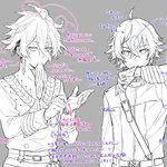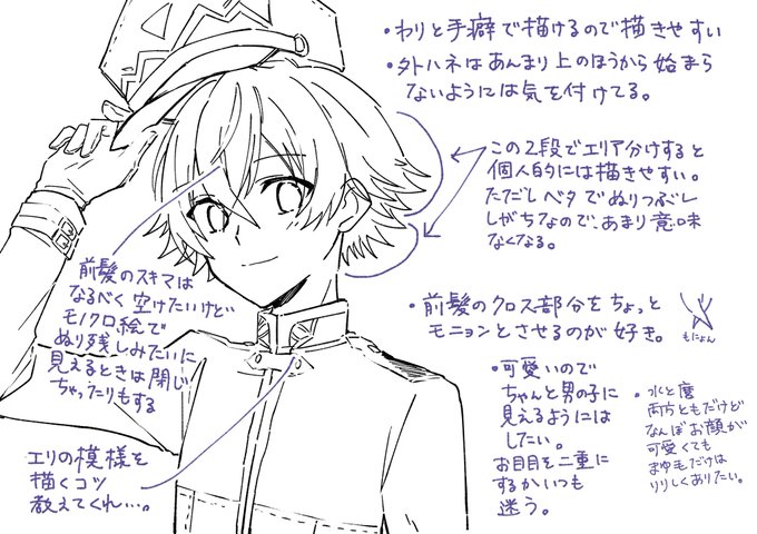 #水心子・清麿の創作研究会 水心子くんは結構こだわりもって描いてます 特に髪型や体型。少年~青年イメージであまり大人びず子供になりすぎず(笑顔になると少年寄り 衣装は.5を一時停止してずっとメモ(そして4枚目のごとく清麿くんの黒ヒラヒラ後ろからのやつ下だな…って気づいて直したという…