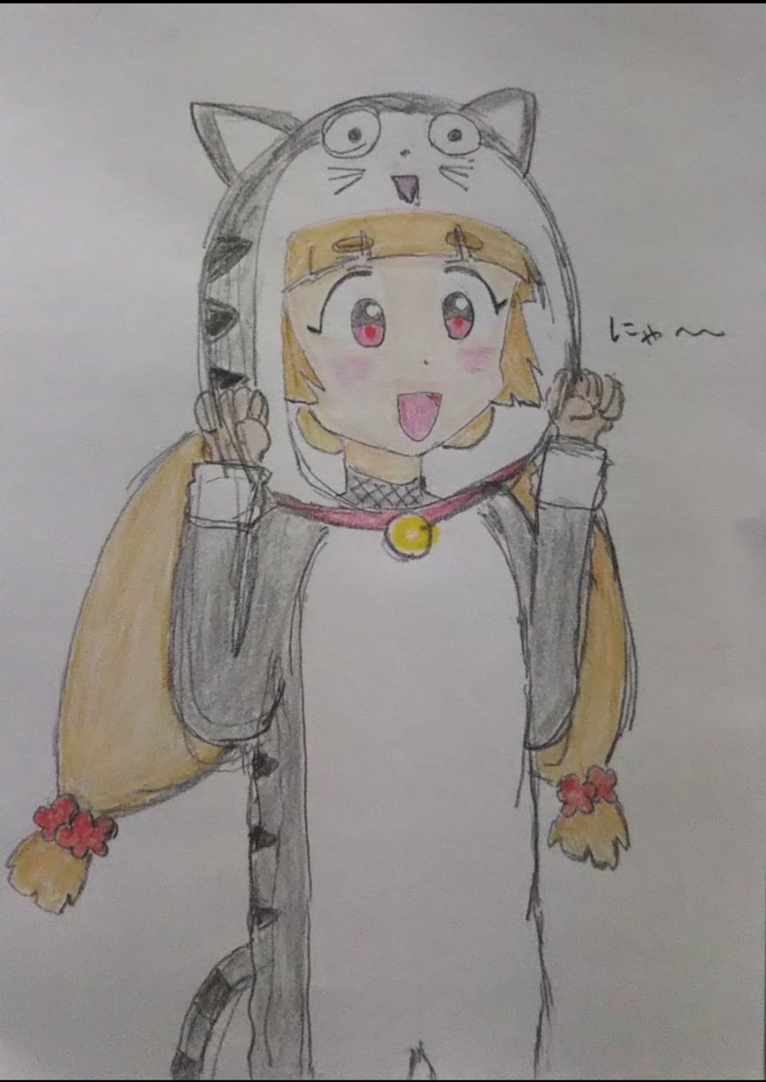 朝、10分で描いた #水戸たん …! 水戸たん、お誕生日おめでとうございます!!(*≧∇≦)ノ🎉🎂✨🎁✨😼🐈️← またイラスト描きますね! #ビッカメ娘 ( #ナイセン ) #6月23日は水戸たんのバースデー #模写 #色鉛筆 #絵描きさんと繫がりたい
