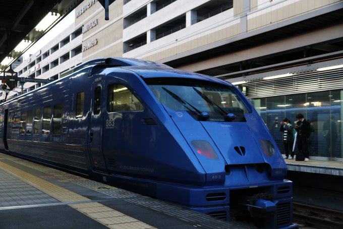 #原作の隣に自分の作品を貼る #イラスト #絵描きさんと繋がりたい #鉄道擬人化 #鉄道開業150周年 #鉄道の日 #水戸岡鋭治 九州を走る“青き騎士王” 883系\ソニック/ ローレル賞&ブルネル賞受賞した平成史のイケメン特急! ソニックブルーでより洗練な神デザインに!
